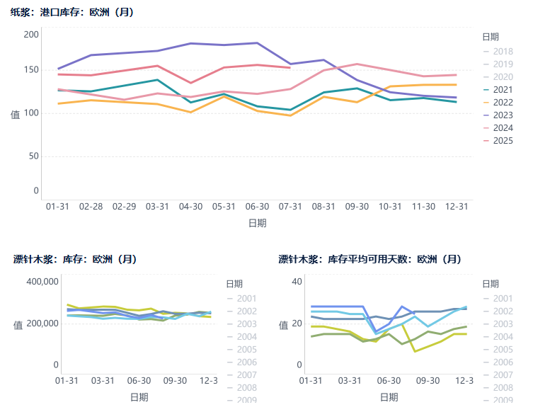 据隆众最新数据显示,截止2025年9月25日,中国纸浆主流港口样本库存量为203.3万吨,较上月末继续呈现去库的走势。同比处于5年同期高位,库存压力依然较大。