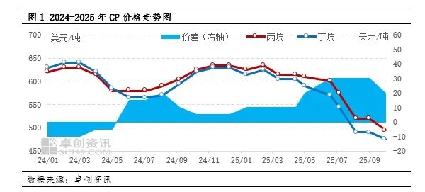 当前国际局势动荡,地缘政治风险反复变化,导致原油价格剧烈波动,原油端对国际市场的支撑有限。同时关税争端或将卷土重来,以及船运政策影响,导致市场观望情绪难消,当前现货交易市场相对冷清。叠加中国需求不及预期影响,11月CP预期仍有下调。