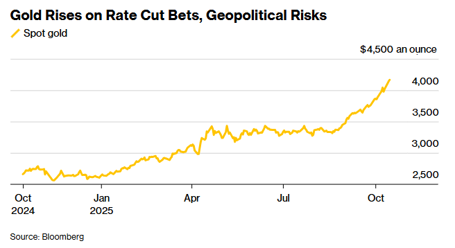 “避险+降息”双引擎点燃贵金属行情!黄金续创新高站上4180美元白银同步走强