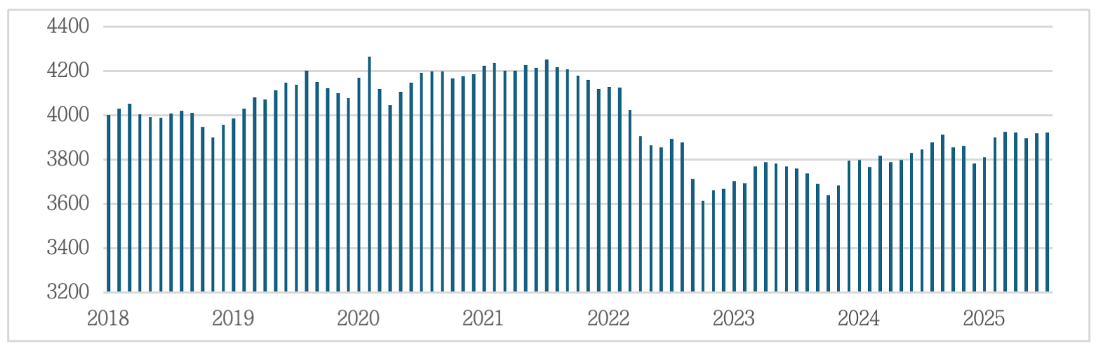 图3 2018年1月-2025年7月外国官方持有的美国国债余额