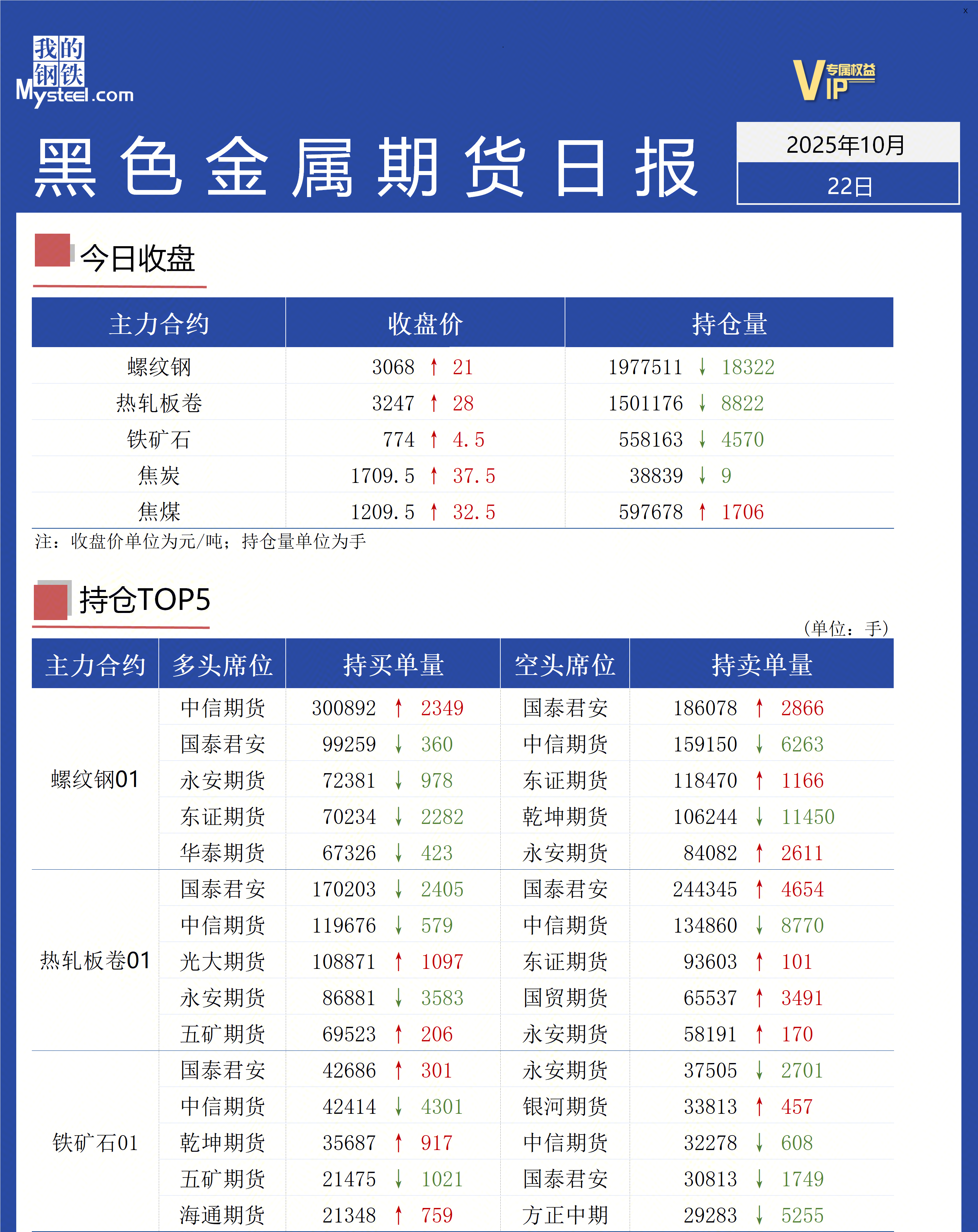 【Mysteel:黑色金属期货日报解读10月22日】研究员:金岭