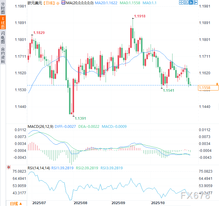 下行方面,若汇价跌破10月30日低点1.1546,可能进一步下探8月5日低点1.1527,继而考验8月1日低点1.1391支撑位。