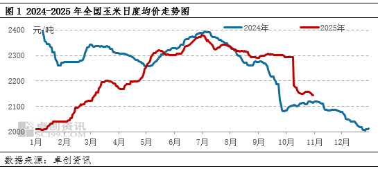【导语】10月份国内玉米价格继续下滑,月均价环比下跌。后续11月来看,新粮持续上市,下游需求端情绪偏谨慎,预计玉米现货均价重心将小幅下移。
