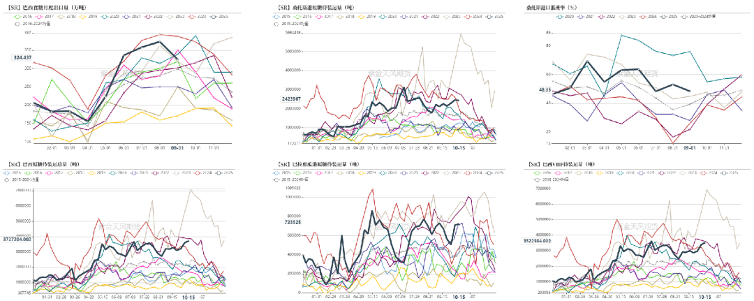 9月下半月,巴西中南部地区甘蔗入榨量为4085.8万吨,同比增幅5.1%;甘蔗ATR为157.48kg/吨,较去年同期的160.34kg/吨减少2.86kg/吨;制糖比为51.17%,较去年同期的47.73%增加3.44%;产糖量为313.7万吨,较去年同期的283.2万吨增加30.5万吨,同比增幅达10.76%。