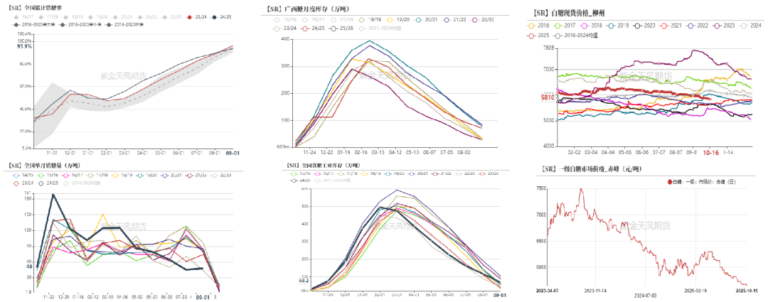 加工糖厂主流报价区间5840-6000元/吨,跟随广西糖到港价,现货价格较为坚挺。