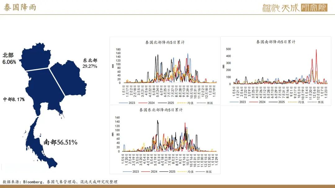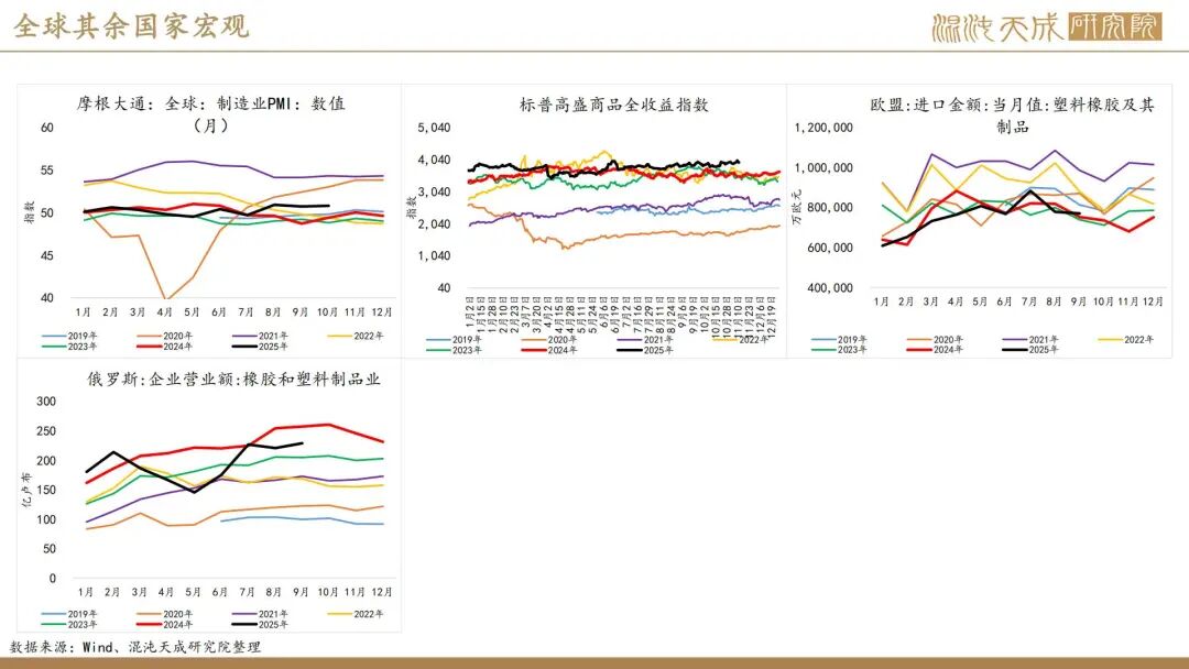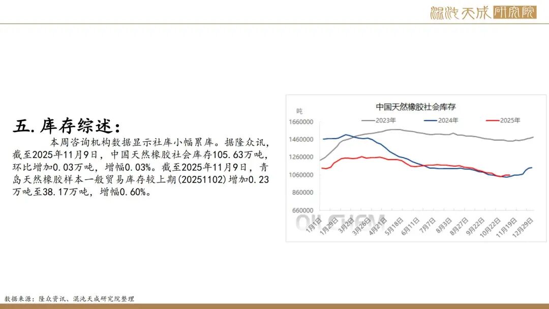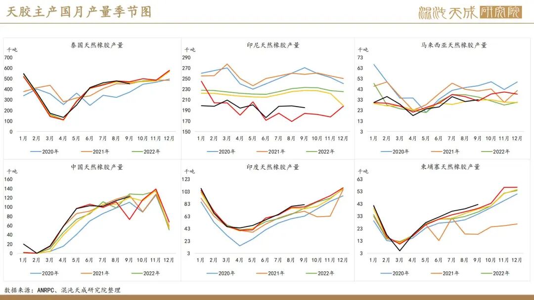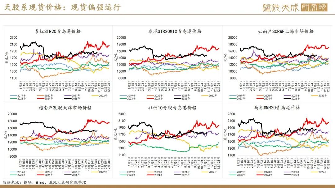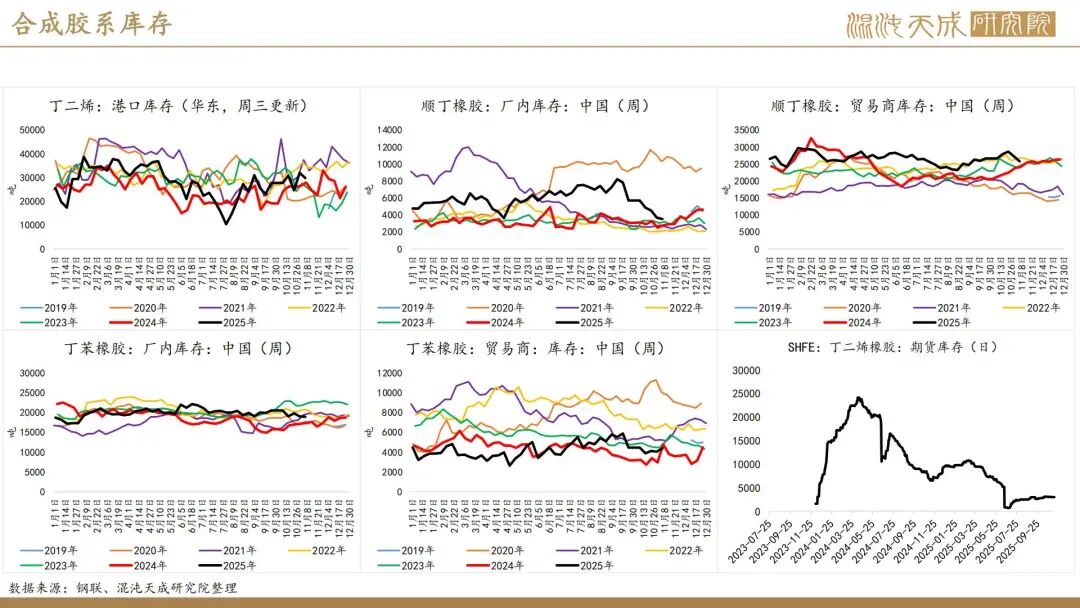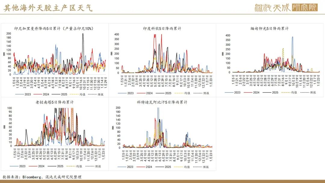 出口方面,2025年前10个月,科特迪瓦橡胶出口量共计138万吨,较2024年同期的121万吨增加13.8%。单看10月数据,出口量同比增加6.6%。目前的供应格局是,三季度所谓主产国减产预期被进出口数据证伪,东南亚除泰国外的产量减量与科特迪瓦产量增量相当,而泰国地区四季度上量预期强,泰农业部预期25年对比24年同比增产,故而25年预期全球总产量保持增长,产量拐点仍然未到。