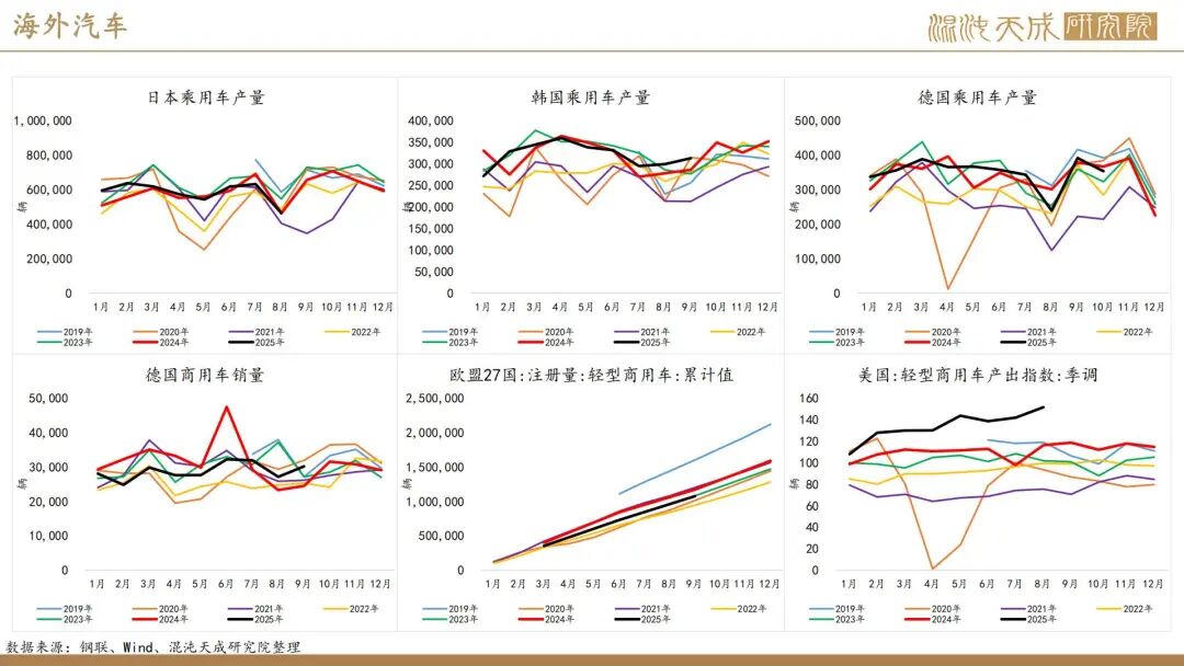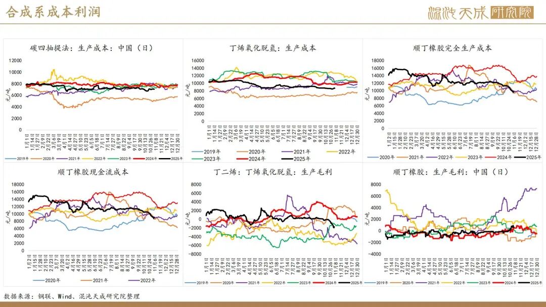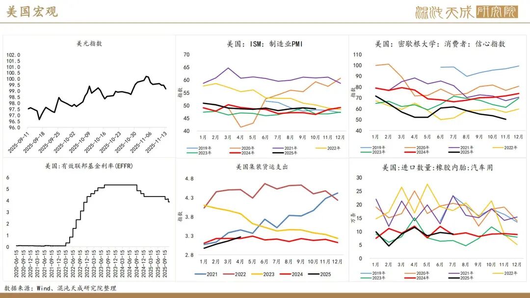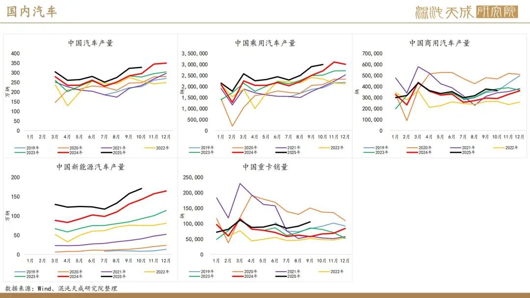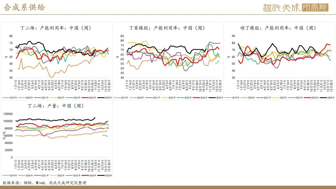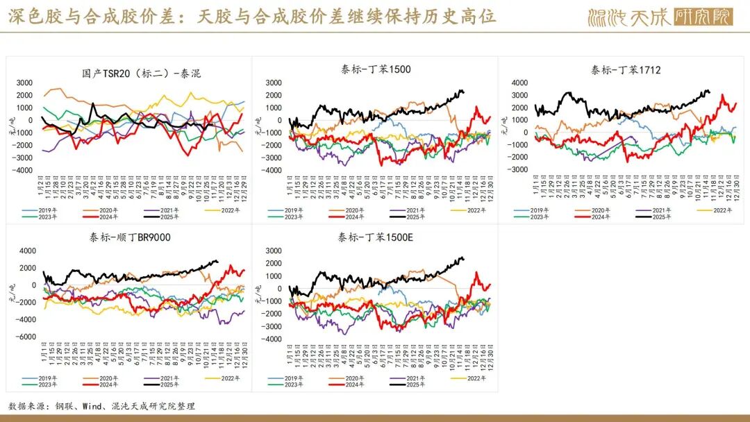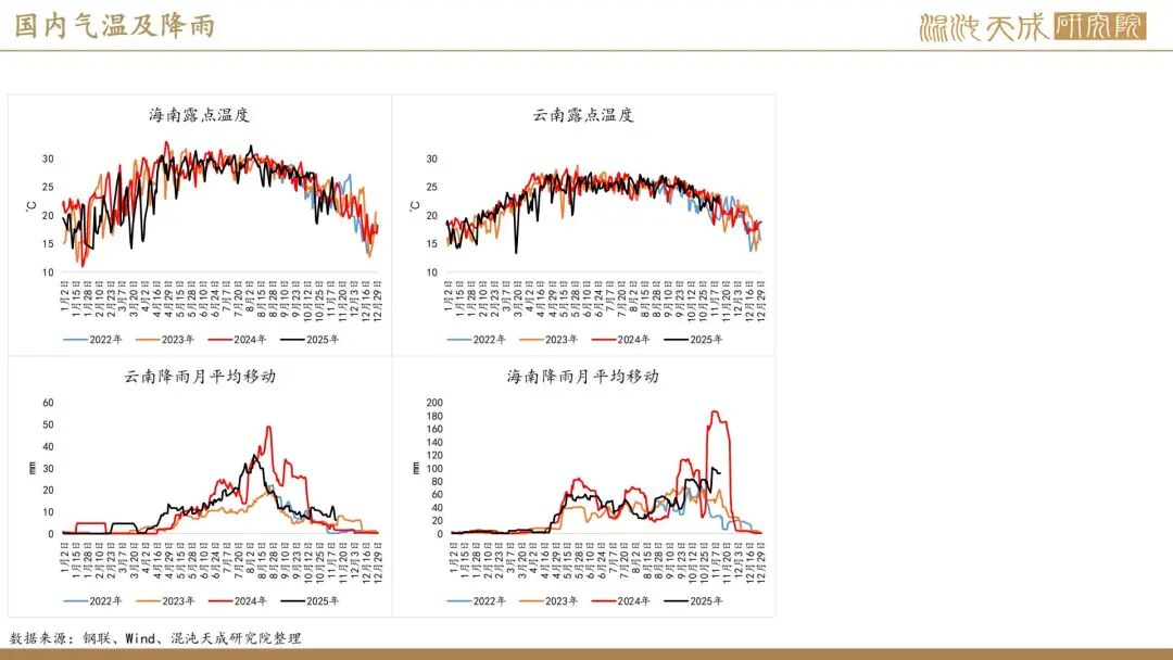 出口方面,2025年前10个月,科特迪瓦橡胶出口量共计138万吨,较2024年同期的121万吨增加13.8%。单看10月数据,出口量同比增加6.6%。目前的供应格局是,三季度所谓主产国减产预期被进出口数据证伪,东南亚除泰国外的产量减量与科特迪瓦产量增量相当,而泰国地区四季度上量预期强,泰农业部预期25年对比24年同比增产,故而25年预期全球总产量保持增长,产量拐点仍然未到。