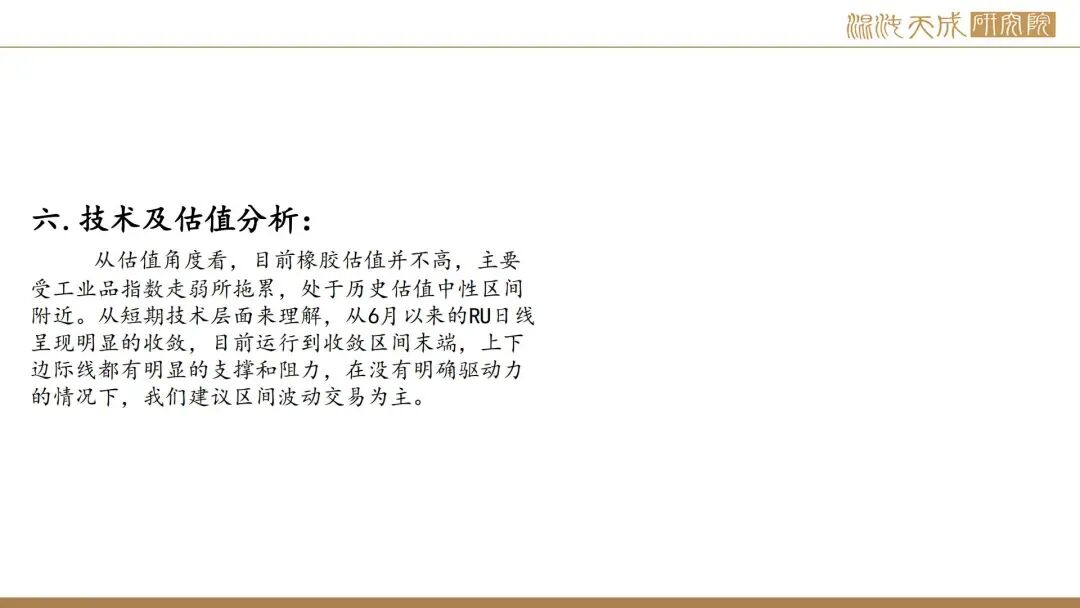 总的来说,橡胶基本面临近转弱的拐点,季节性上量和国内累库将至,宏观层面利多落地以及不及预期,拖累整个内盘商品走弱,胶价或弱势运行为主。后续跟踪上,重点关注泰混现货升贴水情况,产区天气及原料表现,以验证供应端转折点。
