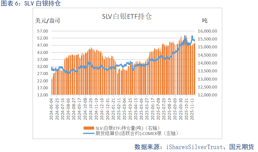 截至11月21日,SPDR持仓量为1044.57吨,与前一周相比减少了3.43吨,基金持仓有所减少。截至11月21日,SLV持仓量为15257.92吨,与前一周相比增加了39.50吨,基金持仓有所增加。