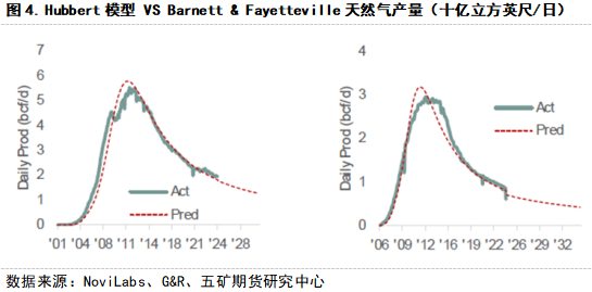 Hubbert模型曾精准预测Barnett和Fayetteville区域的天然气产量衰竭过程。