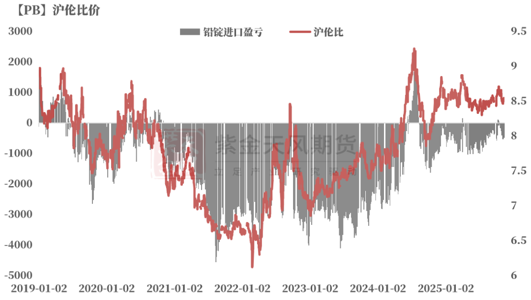 库存方面,目前虽内外库存水平仍存巨大差距,但铅锭进口窗口维持关闭,国内货源若趋紧难快速依托进口缓解。
