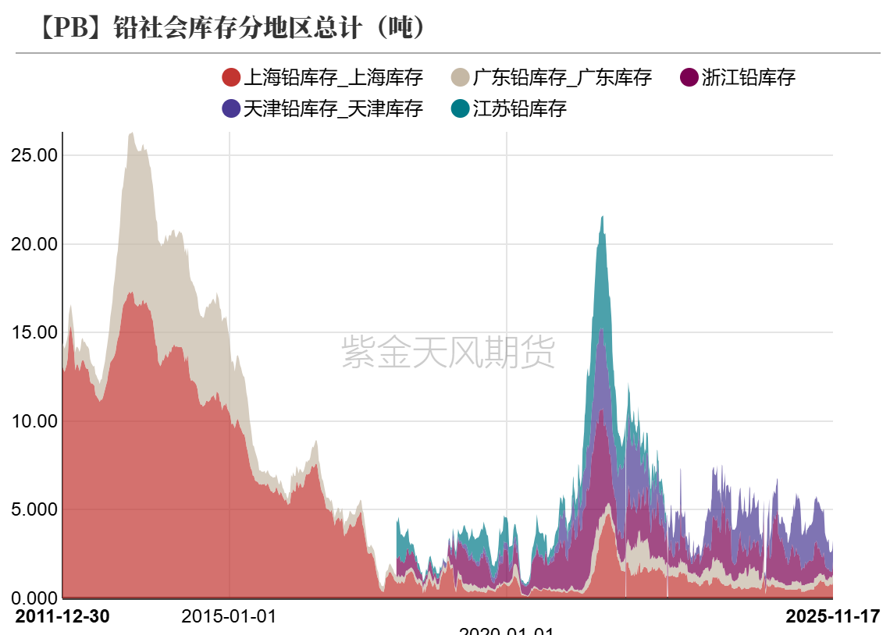 截至11月20日,五地铅锭社会库存总量3.77万吨,环比去库0.09万吨。
