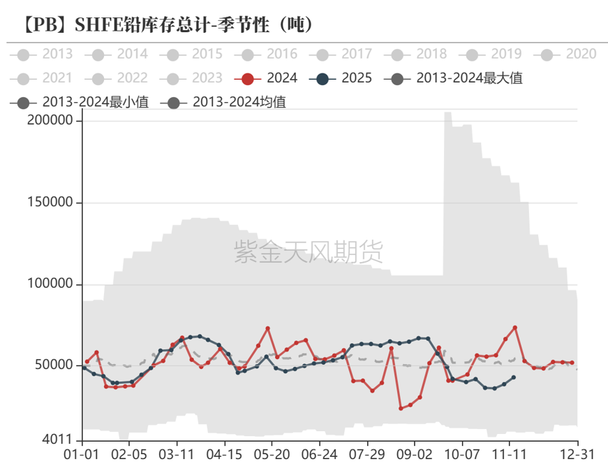 截至11月14日,SHFE铅库存总计4.28万吨,环比累库4208吨。