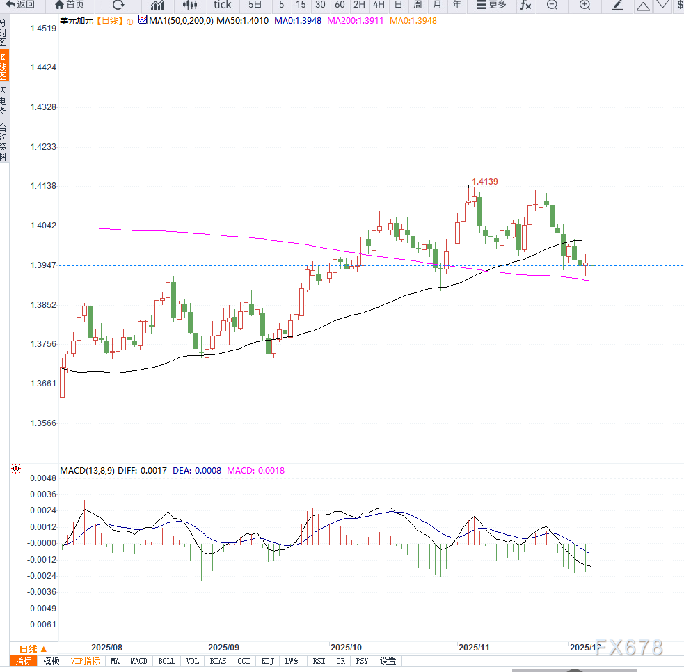 当前美元兑加元走势呈现“美联储降息预期+加拿大就业数据待公布+技术区间震荡”三重特征。加拿大就业数据的强弱将直接影响加元短线表现,而美联储降息预期已为美元提供结构性下行压力。