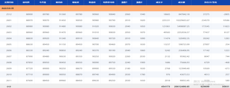 上期所铜期货合约行情