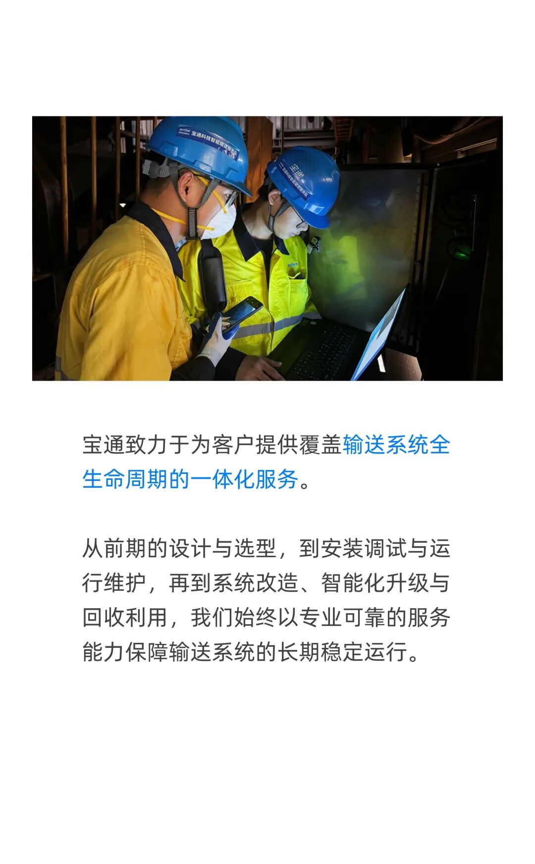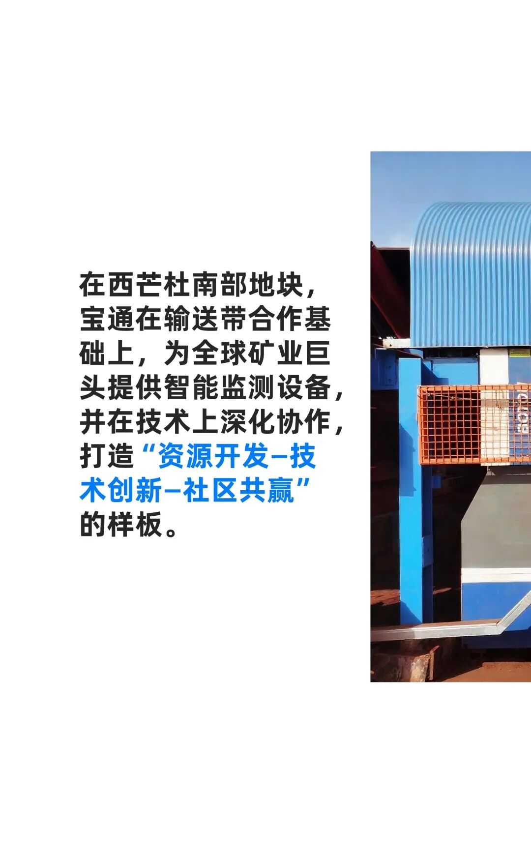 依托高质量输送带、智能监测设备、全球技术支持、本土化服务与ESG实践,宝通构建A-Z全栈式解决方案,不仅体现“中国装备和产品走出去”的实践,也通过技术创新与现场适配,构建“1小时技术支持和服务圈”,为世界级矿山的智慧化、规模化开发提供可复制的宝通方案。