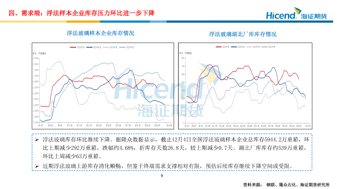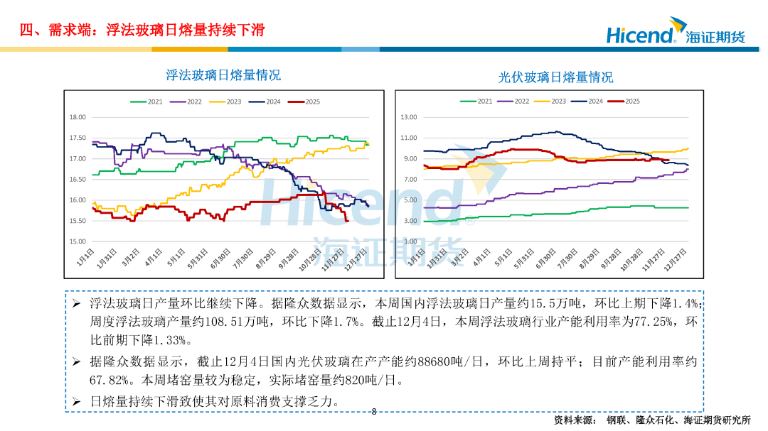 产业利润的持续压缩使其成本支撑短期凸显,加之开工下滑带动产业库存得到部分消化,但依然无法抵抗需求端持续疲弱冲击。浮法玻璃日熔量大幅回落拖累原料价格继续下探,市场情绪亦相对偏弱。整体来看,鉴于纯碱开工止跌企稳以及需求端持续疲弱,短期供需依然偏弱。虽目前纯碱绝对估值不高,但反弹驱动不足,预估低位调整运行的概率较大。