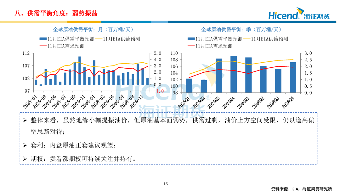 整体来看,虽然地缘小幅提振油价,但原油基本面弱势,供需过剩,油价上方空间受限,仍以逢高偏空思路对待;