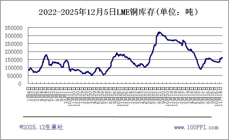 据伦敦金属交易所(LME)公布的数据显示,LME铜库存小幅上涨,截止上周末,LME铜库存162550吨,较上周初上涨1.96%。