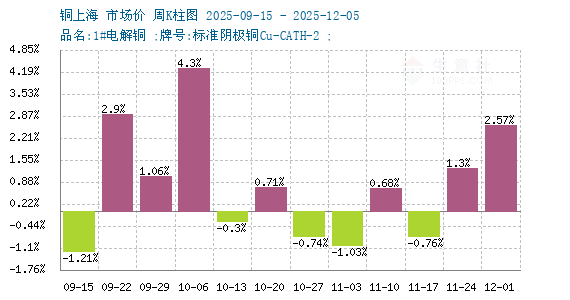 据生意社周度涨跌图显示,近三个月来,铜价跌5涨7,上周铜价小幅上涨。