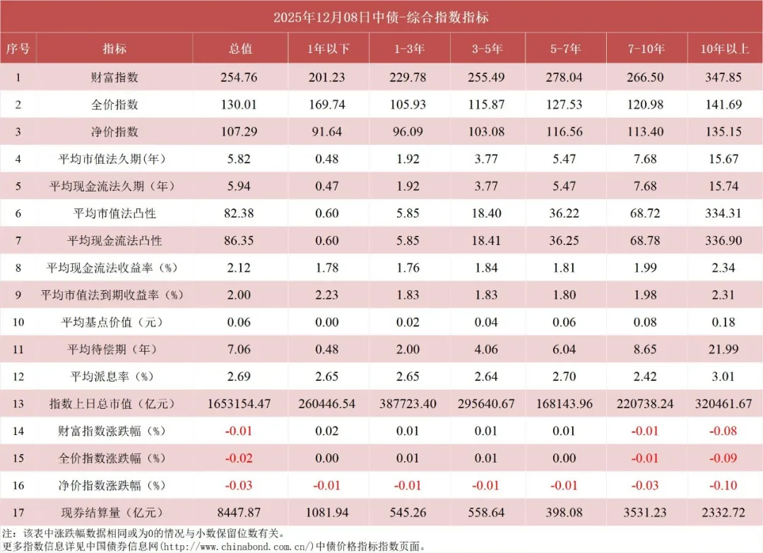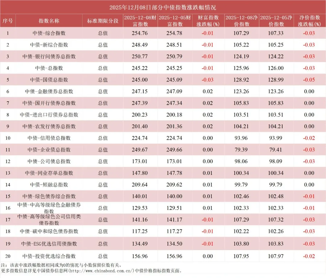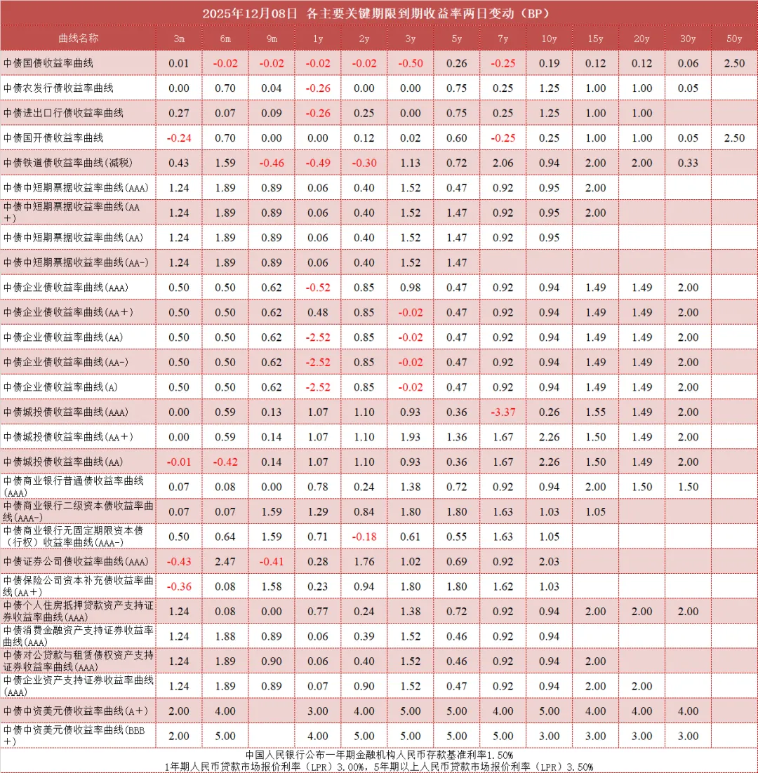 债市值言:中债收益率曲线和指数日评2025年12月8日