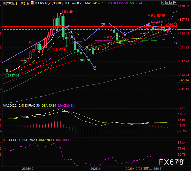 汇通财经APP讯——周二(12月9日)亚欧时段,黄金价格二次下探了一周低点附近,之后受到美元指数带动反弹们目前在4200美元关口附近整理,一方面,美联储降息预期持续发酵,另一方面,周一基准10年期美国国债收益率攀升至2个半月高点,原因是市场猜测美联储主席杰罗姆.鲍威尔在会后新闻发布会上可能释放“进一步降息门槛提高”的鹰派信号,这一因素持续对黄金构成压制。