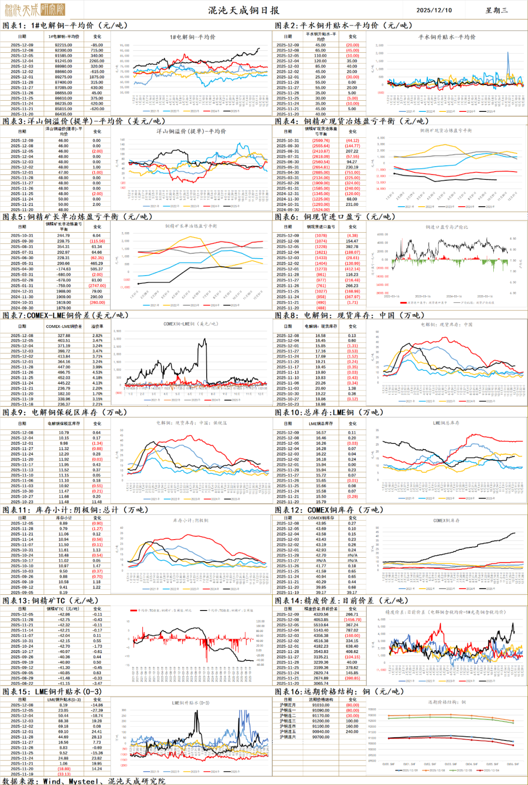 美联储12月降息25bp概率升至87.6%,议息会议临近,基于避险资金会有止盈,议息会议之后就将面对现实需求和日央行是否加息的验证,宏观进一步偏多难度较大,关注12.19日日央行是否加息。国内反内卷仍是主线,工业和信息化部等八部门印发《有色金属行业稳增长工作方案(2025—2026年)》,对于产能仍是以能耗和环保作为抓手,给出的产量整体增速指引为1.5%,需要看到实际的供需好转才能作为价格上行的驱动。