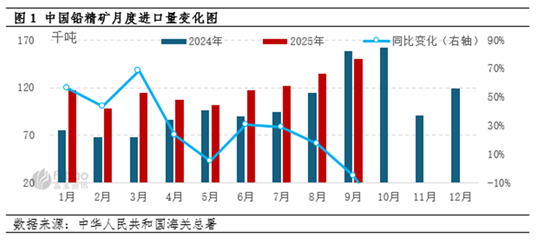 2025年10月国内铅价上涨,但国际铅精矿供应偏紧导致进口加工费持续低迷,挤压了冶炼厂利润。因此,企业为控制成本,减少高价进口矿的采购,转向使用国内矿和再生原料,致使进口量明显下降。