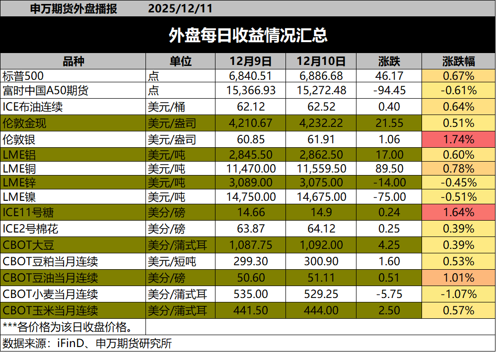 美联储如期降息:申万期货早间评论-20251210