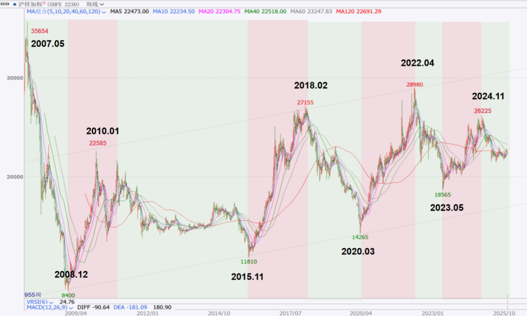 自2007年上海期货交易所推出锌期货合约以来,沪锌市场经历了四轮完整的牛熊转换,锌市场已从单纯的供需基本面驱动,逐步转变为宏观政策、金融属性、供应链风险等多重因素共同驱动的复杂系统。尤其是2016年以后,锌价对宏观政策和突发事件的敏感性明显提高,价格波动更加频繁且剧烈。