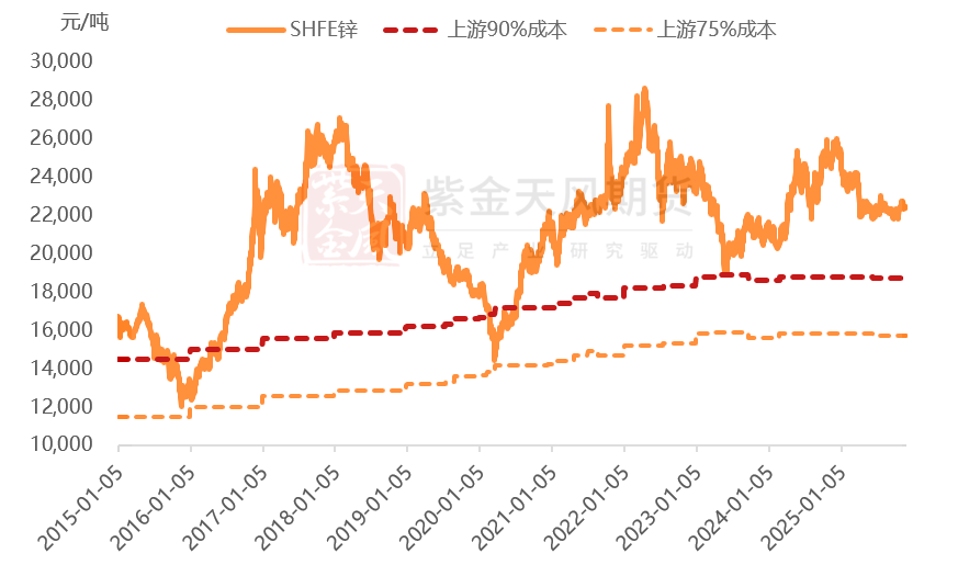 图5:历史上矿山75分位成本线对锌价产生强支撑