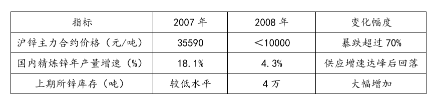 宏观方面,2008年的全球金融危机也加剧了锌价的下跌。一方面,金融危机下全球经济增长放缓,锌的消费需求大幅萎缩。另一方面,2008年9月15日雷曼兄弟破产,标志着金融危机全面爆发且达到恐慌顶点,金融市场流动性紧张下风险资产遭抛售,基本金属首当其冲,锌价迎来了最后一波加速下跌。