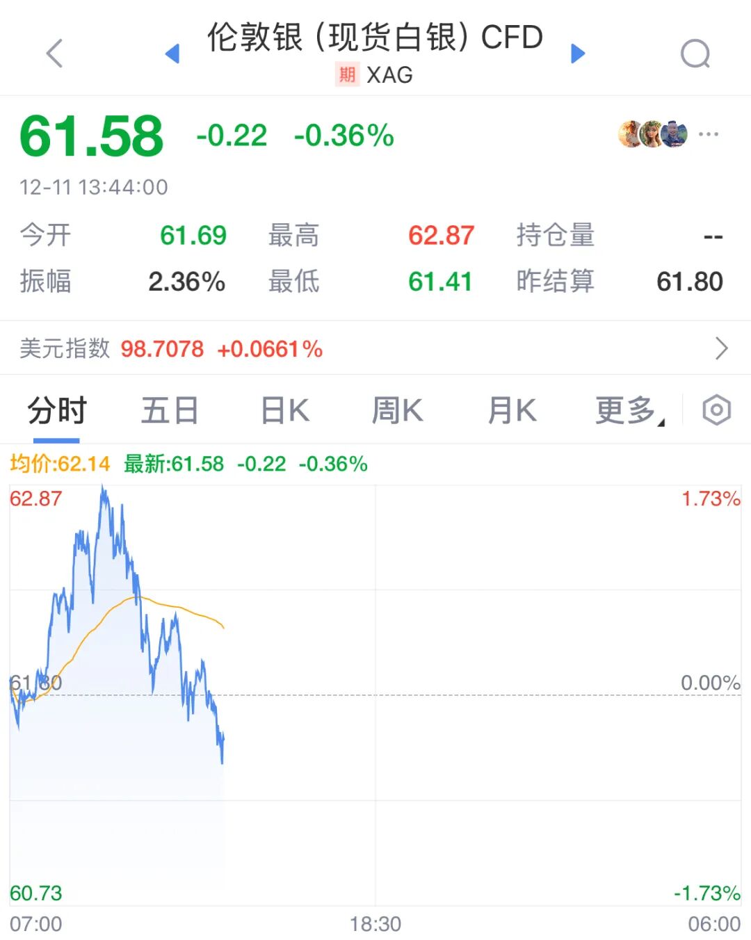 北京时间12月11日,现货黄金、现货白银开盘后短暂拉升,之后持续跳水。截至发稿前,现货黄金跌0.46%,报4209美元/盎司;现货白银跌0.36%,报61.58美元/盎司。