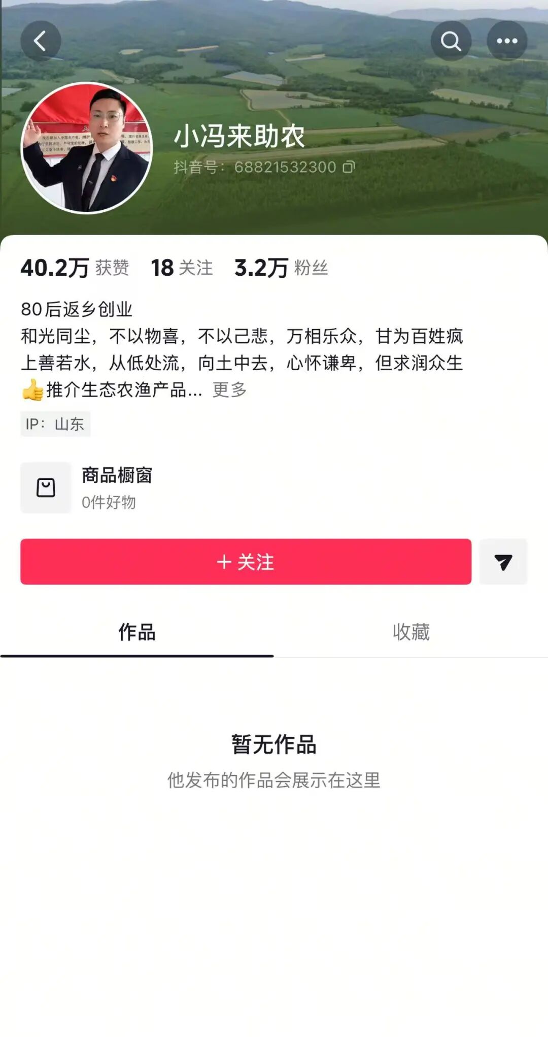根据网友录屏,该账号曾发布“金谷小米发布会”等多条视频。蓝鲸记者发现,目前该账号已改名,并清空所有作品。简介中提到其是“80后返乡创业”,“推介生态农渔产品”。