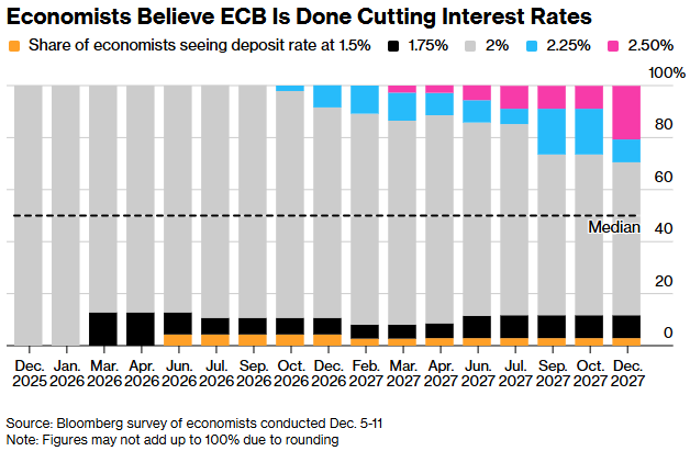 Scope Economics经济学家丹尼斯.申表示:“由于通胀风险相对平衡,欧洲央行应该认为目前的利率设置是适当的。我们不预计2026年会有任何降息,但欧洲央行将保持其选择的开放性。”