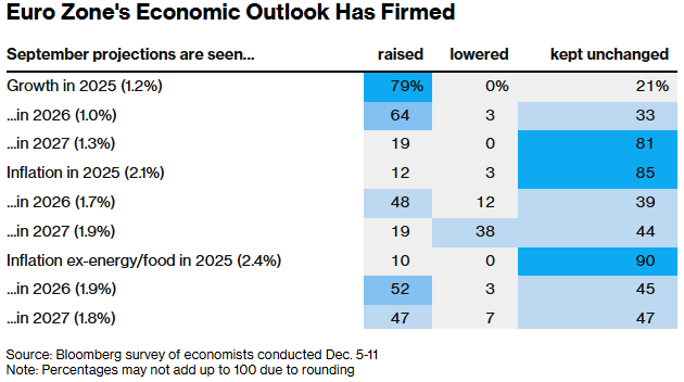 事实上,调查受访者认为,欧洲央行下周发布的新季度预测将描绘出更光明的增长前景——拉加德本人也暗示过这一点。