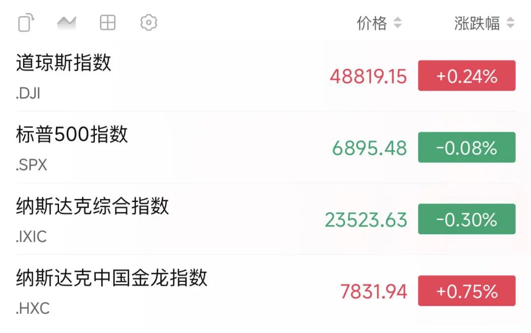 当地时间12月12日(周五),美股三大股指走势分化,道指创下历史新高。截至发稿,道指涨0.24%,标普500指数跌0.08%,纳指跌0.3%。