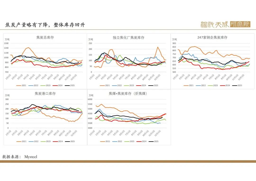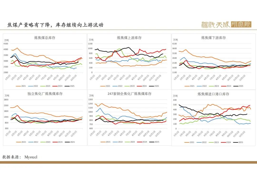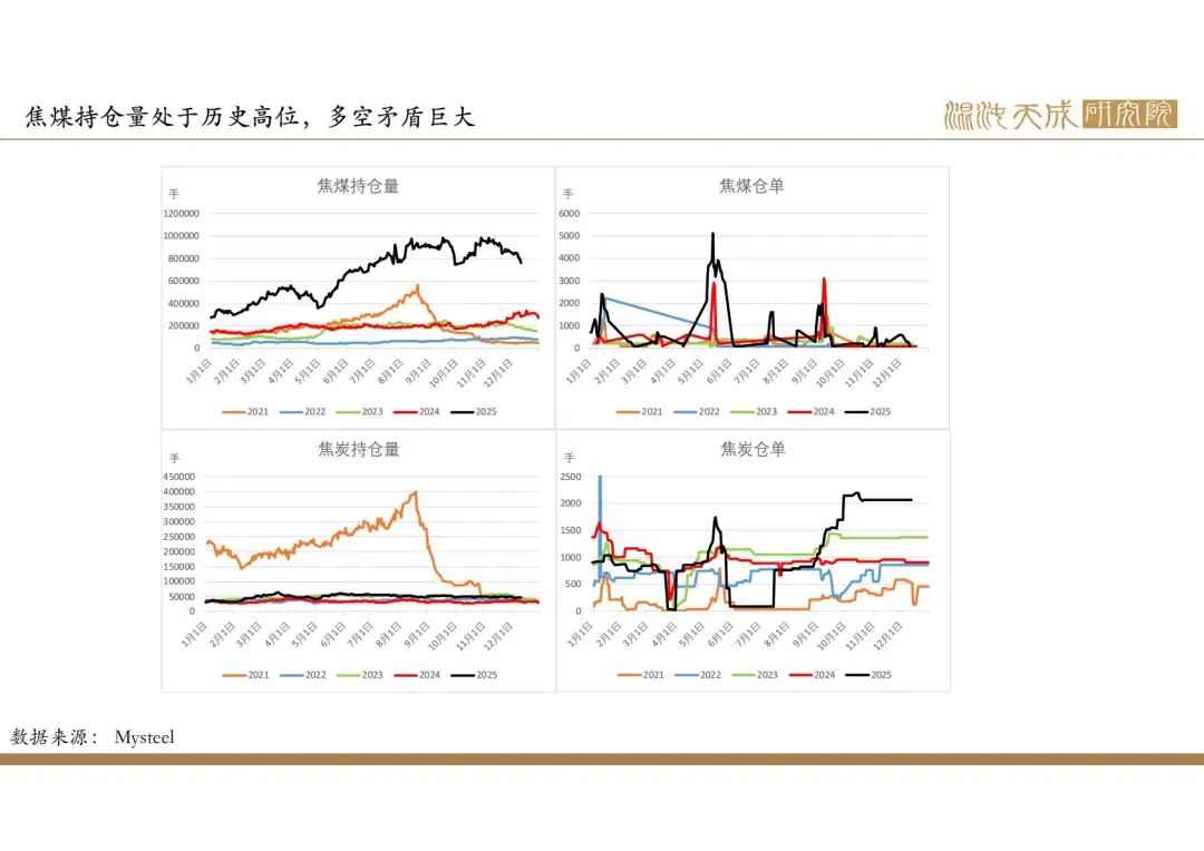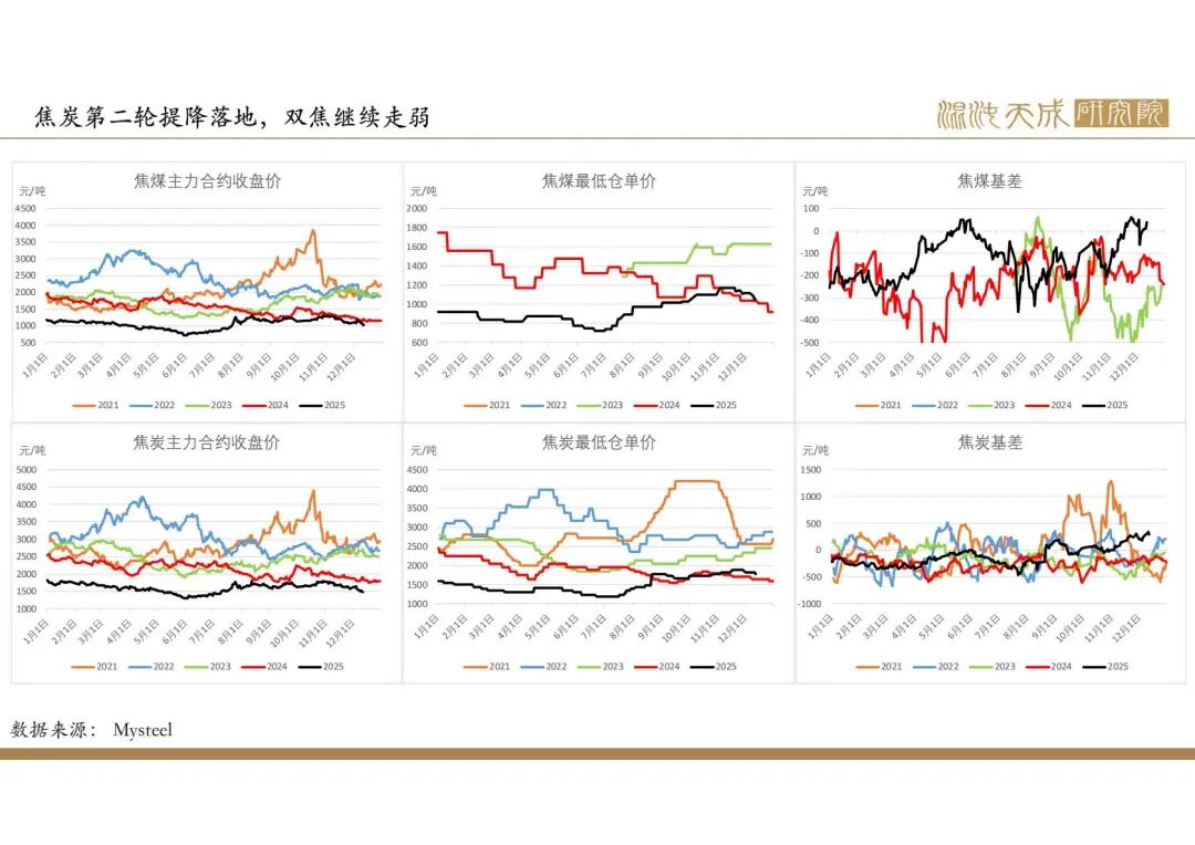 2025年政府政策主线在于化债和促消费,国内建筑业需求偏弱,但出口增速较高,钢材整体需求较好,但钢材产量和库存处于较高位,企业利润下降,后市有一定减产预期。焦煤产量低位运行,进口量持续增加,供需趋向于宽松。
