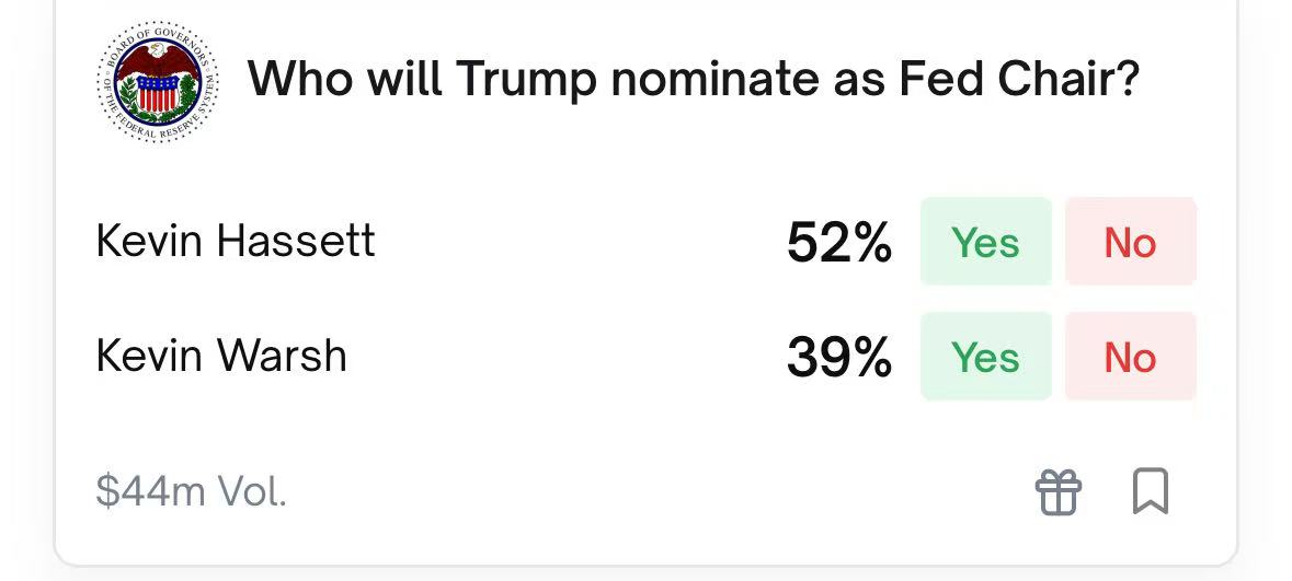 不过,尽管沃什的胜算显著提高,但白宫经济顾问哈塞特的获胜概率依然领先,根据polymarket数据,截至12月15日,哈塞特当选下一任美联储主席的概率为52%。