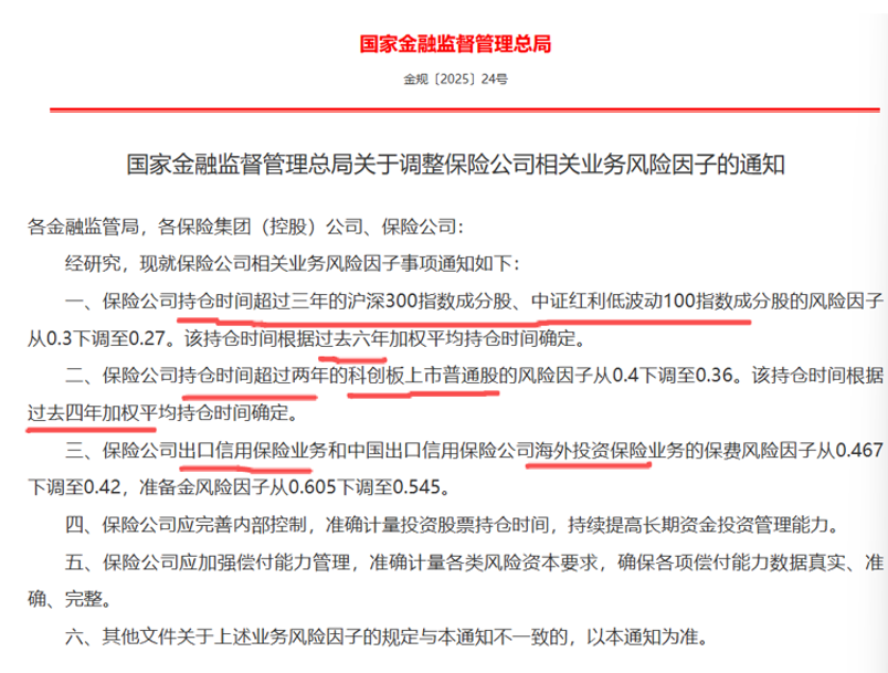 近期,一项关键政策的落地,为“春季躁动”增添了新的制度注脚。金融监管总局发布通知,下调了保险公司投资沪深300指数成分股、中证红利低波动100指数成分股以及科创板股票的风险因子。