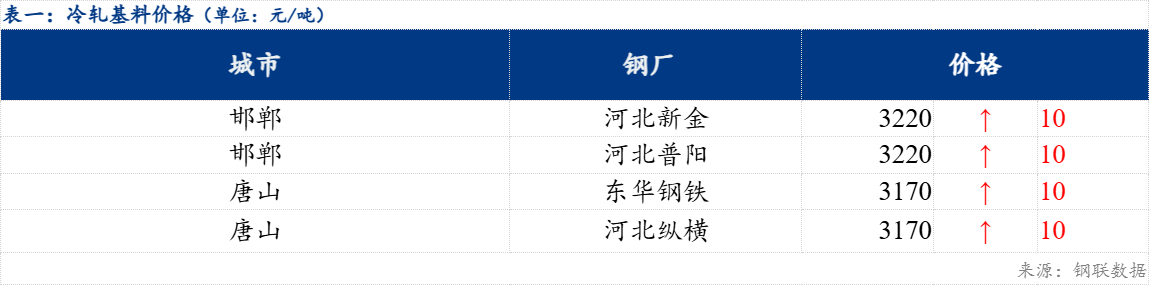 今日北方市场冷轧基料3.0*1010*CSPHC河北普阳价格为3220元/吨,较上一期价格上涨10元/吨,河北纵横价格为3170元/吨,较上一期价格上涨10元/吨。镀锌方面,今日北方钢厂指导价格部分下跌10-30元/吨;轧硬方面,当前主流报价3355-3430元/吨。市场方面,热卷期货盘面价格继续走弱,现货市场商家报价稳中跟跌为主。成交方面来看,市场交投氛围一般。