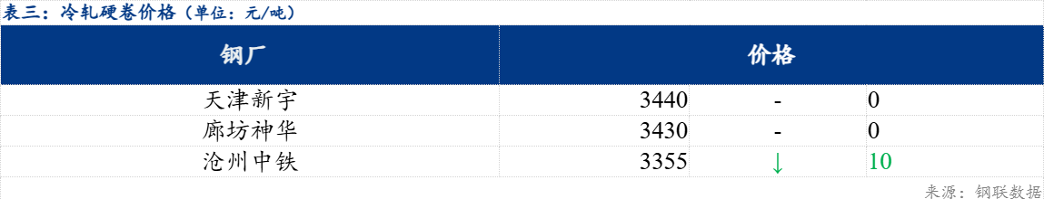 3、以上冷轧硬卷廊坊神华规格为0.27mm,其余为0.35mm;