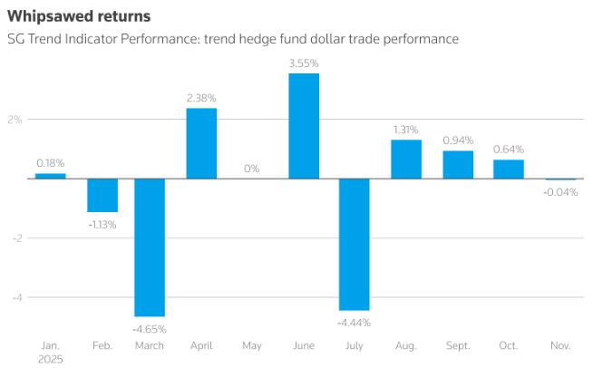 2025年可谓是波折起伏的一年,发达市场货币的波动率在4月份飙升至两年来的高位;随后有所缓和,一个更加稳定的市场使得套利交易(即借入低收益货币以投资于高收益货币)更具吸引力。外汇市场的高波动性给对冲基金带来了盈利机会。例如,一位知情人士表示,管理着10亿美元资产的对冲基金EDL Capital今年增值了28%,年初和所谓的“解放日”期间的收益以及对美元的押注起到了推动作用。