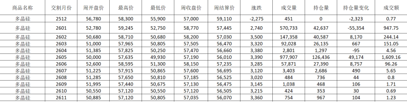 多晶硅合约本周行情数据