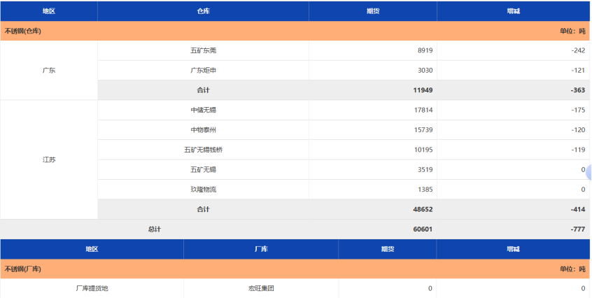 截至12月12日,不锈钢注册仓单60601吨。