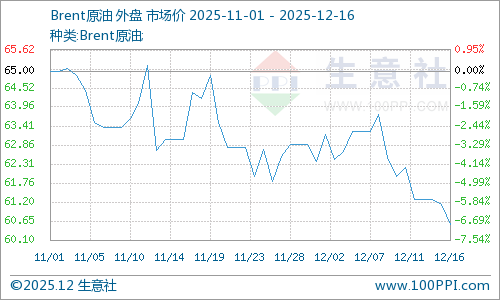 12月15日,国际原油期货收跌。美国WTI原油期货1月合约结算价报56.82美元/桶,跌幅0.62美元或1.1%。布伦特原油期货2月合约结算价报60.56美元/桶,跌幅0.56美元或0.9%。