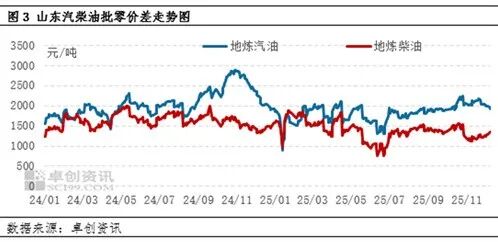 12月上旬国际油价呈现先涨后跌走势,对批发市场形成支撑,汽油批发价格上涨,批零价差逐渐收窄;但需求表现欠佳,柴油批发价格回落,批零价差震荡扩大。汽油成本涨幅有限,柴油成本回落,山东多数民营加油站实际销售价格下跌。