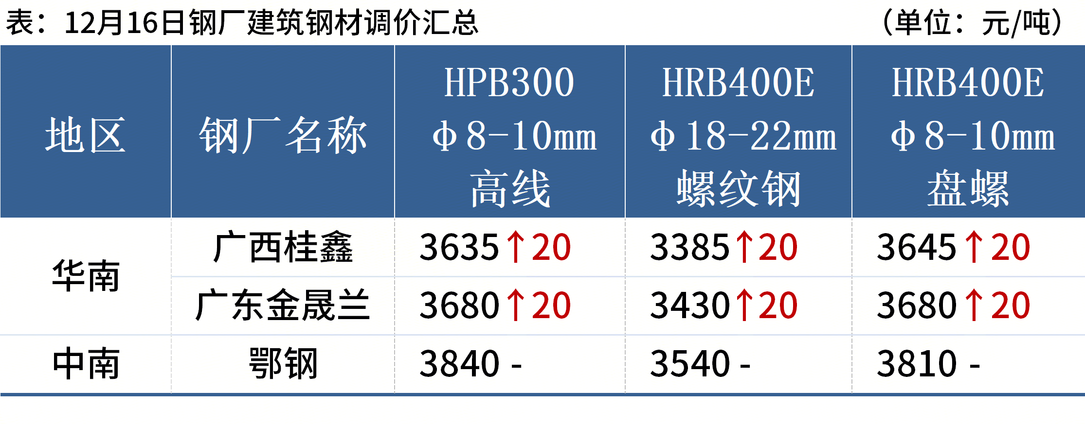 12月16日,2家钢厂上调建筑钢材出厂价20元/吨。