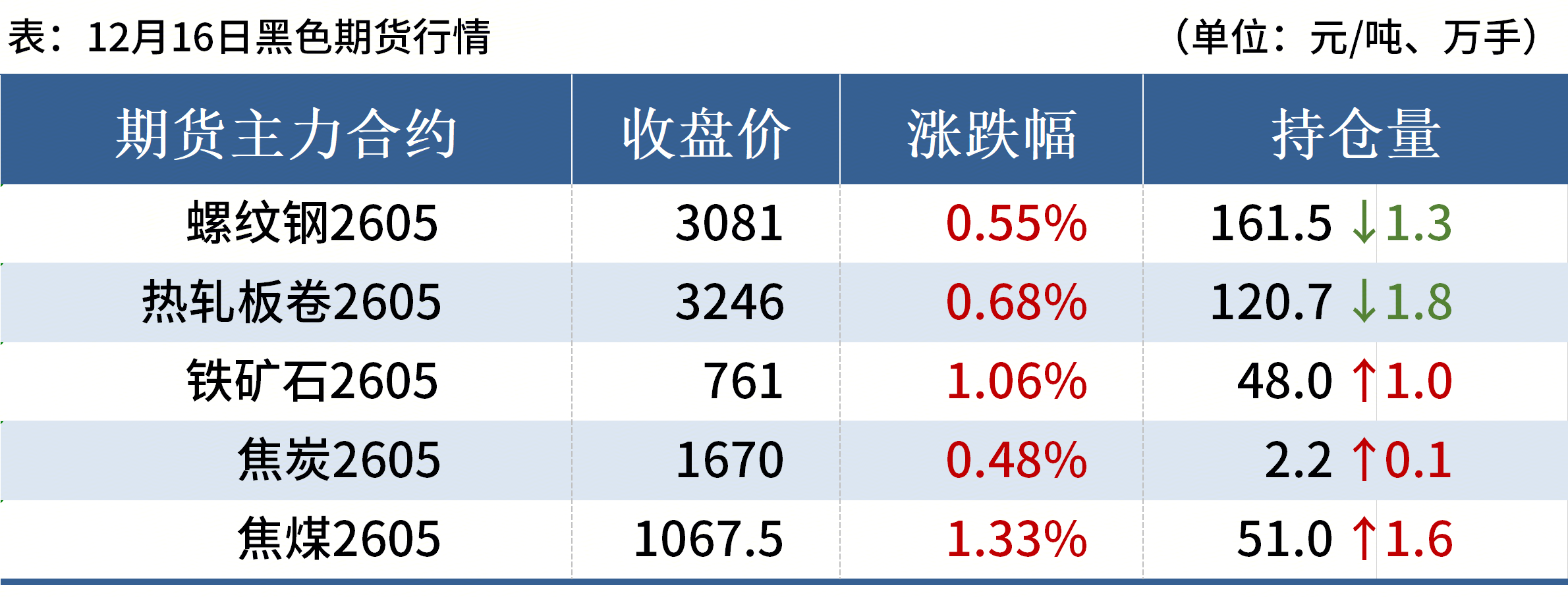 铁矿石:12月16日,山东港口进口铁矿价格较上一工作日小幅上涨,累计上涨3-5。区域内贸易商报价积极性尚可,成交较少;买盘方面,区域内钢厂按需补库,询盘较少。目前60.8%PB粉主流在778-780;超特粉主流在670-675;61.6%PB块主流在850-855。