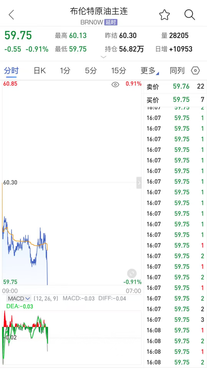 12月16日,布伦特原油期货失守60美元关口,为5月以来首次。截至发稿,报59.75美元/桶。